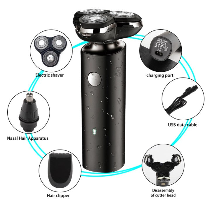 Surker 3in1 Electric Shaver Razor Shaving Beard Machine for Men Dry Wet Beard Trimmer Rechargeable washable 3D head Dual Blades